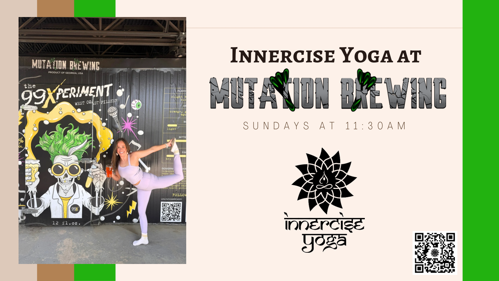 Weekly FREE Innercise Yoga class with us at Mutation Brewing Company!