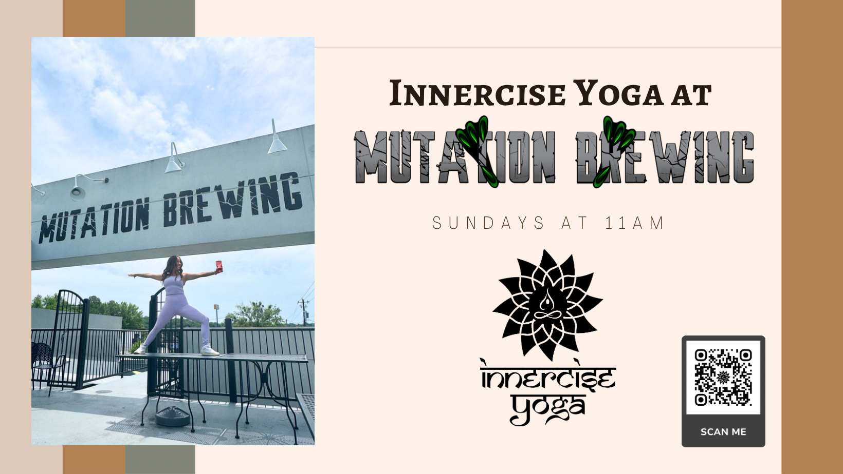 Weekly FREE Innercise Yoga class with us at Mutation Brewing Company!
