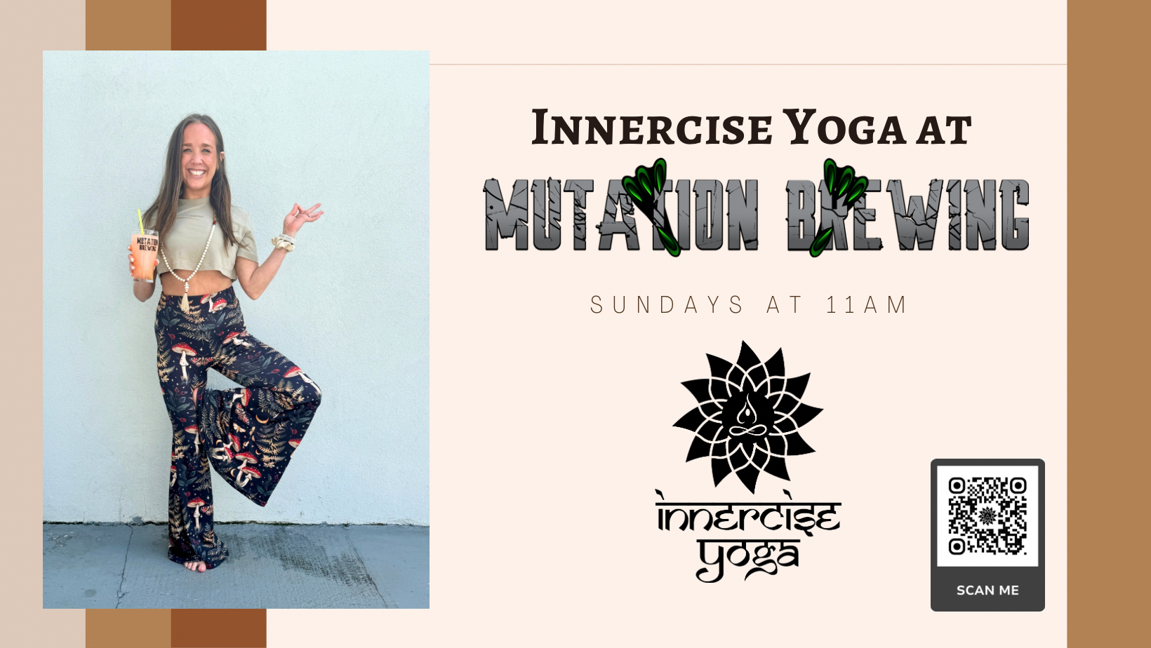 Weekly FREE Innercise Yoga class with us at Mutation Brewing Company!